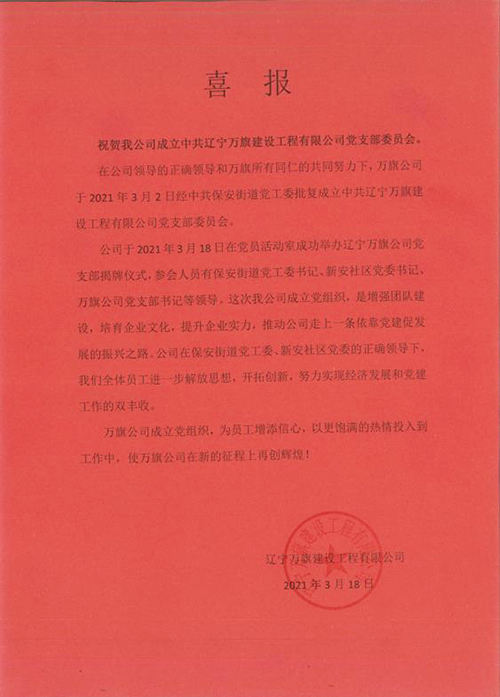 中共遼寧萬(wàn)旗建設(shè)工程有限公司黨支部委員會(huì)