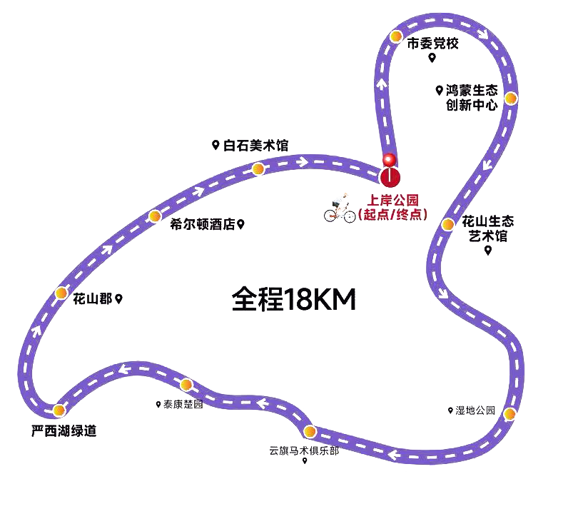 本次騎行路線以花山河上岸公園為起終點,全長約18公里。途經(jīng)鴻蒙生態(tài)創(chuàng)新中心,騎友們感受到的是科技與創(chuàng)新賦予城市的澎湃動能;在花山生態(tài)藝術(shù)館附近,建筑的藝術(shù)感與環(huán)境的靜謐相得益彰;進(jìn)入嚴(yán)西湖綠道段,湖風(fēng)拂面,水鳥翩躚,開闊的湖景則是對湖北聯(lián)投堅持生態(tài)優(yōu)先、綠色發(fā)展,累計完成超千億投資進(jìn)行生態(tài)修復(fù)與綠色建設(shè)的最佳注解。這條路線,讓參與者在有氧運動中,深度閱讀了花山作為“新型城鎮(zhèn)化湖北樣本”的規(guī)劃之美、產(chǎn)業(yè)之新與生態(tài)之優(yōu)。