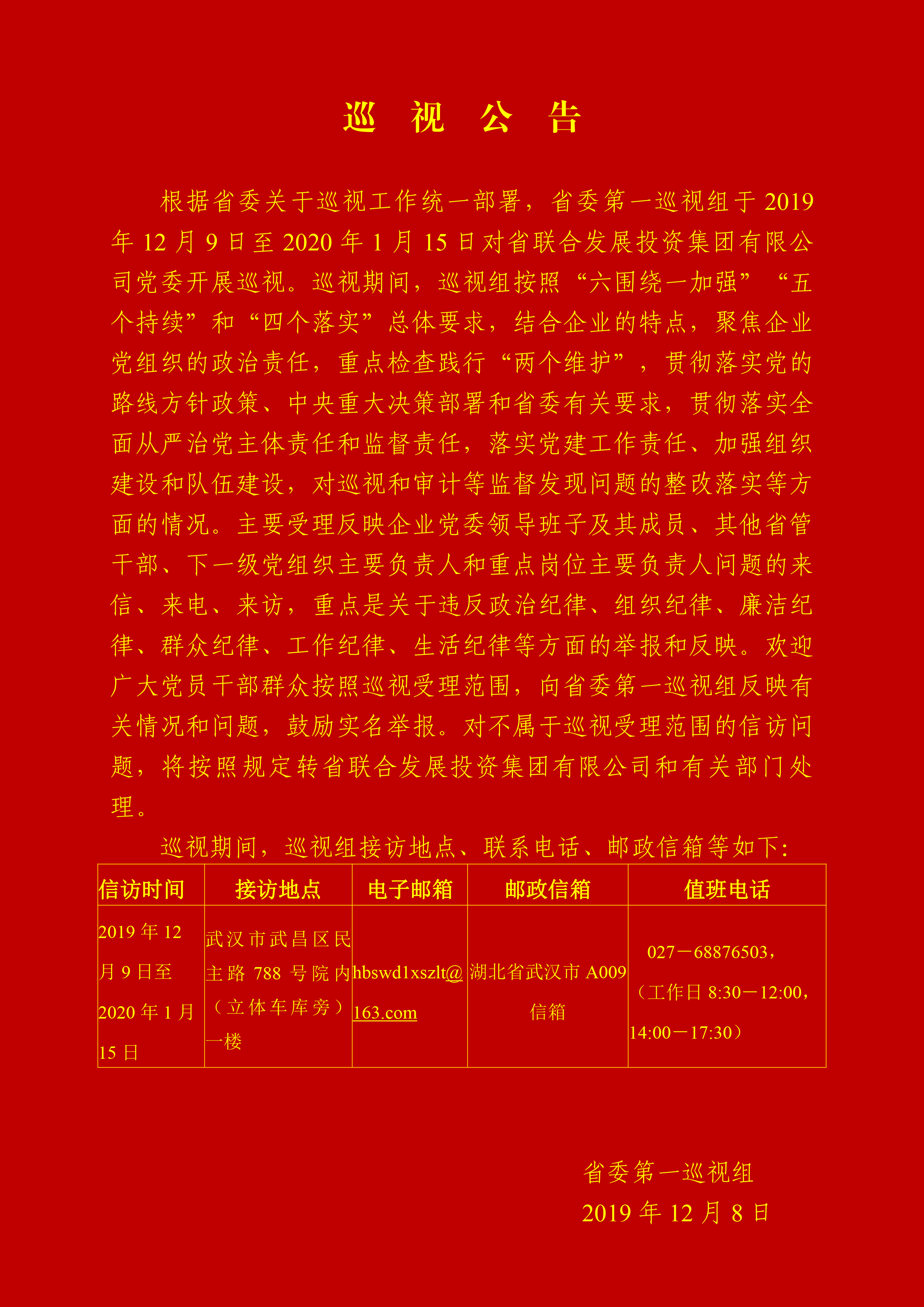 聯(lián)投集團巡視公告